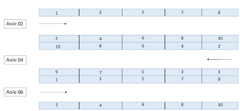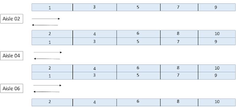 Single-Direction (Snaking) Aisles – Number for Bay / Number for Shelf Height
